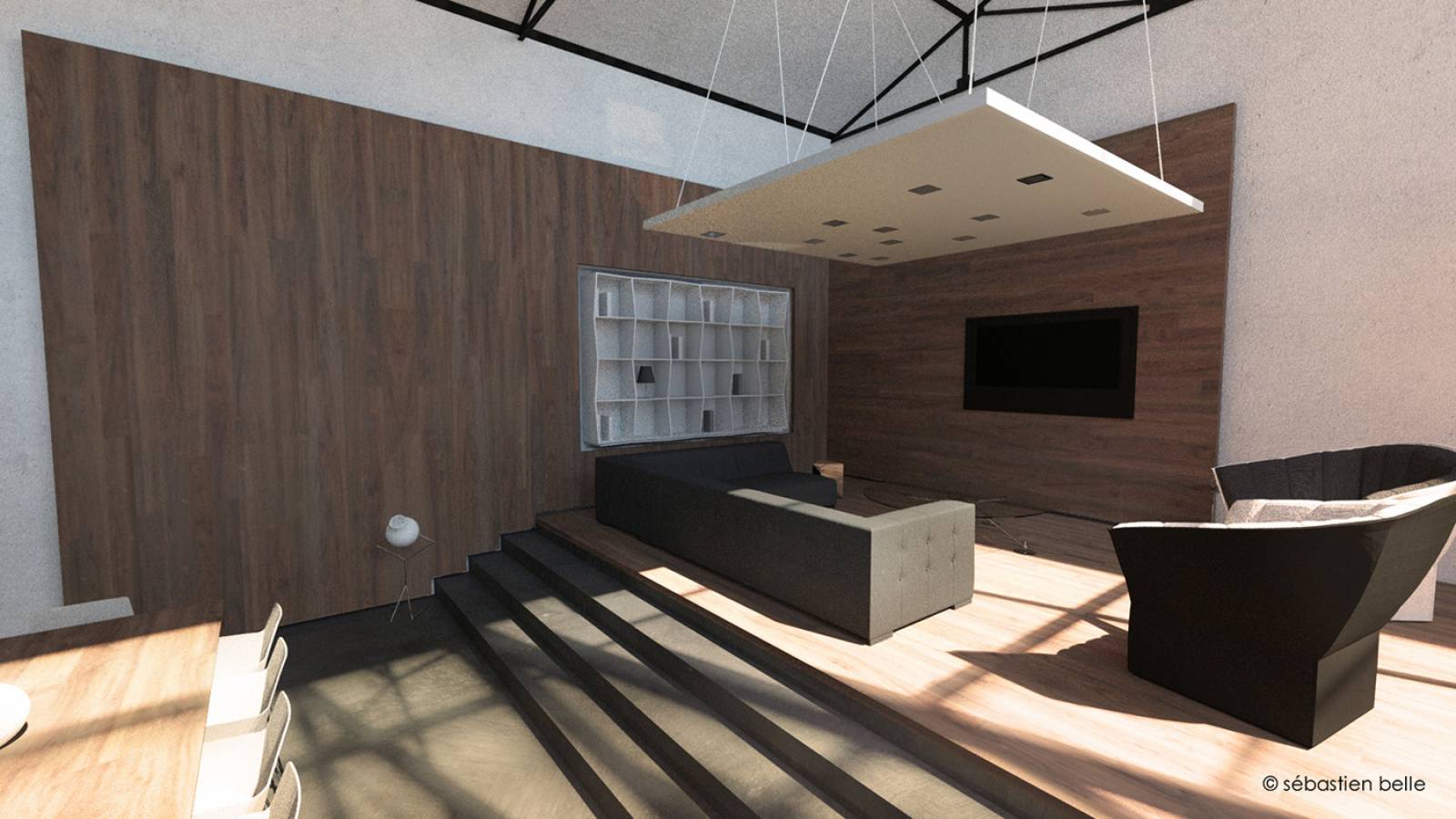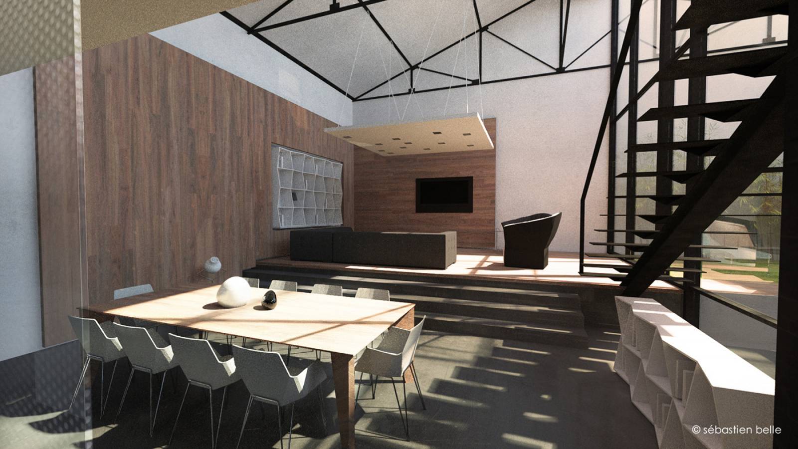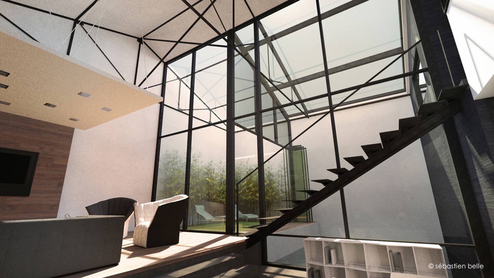 Au cœur de la ville de Lyon, un ancien garage automobile réhabilité en loft. L'esprit industriel de l'architecture originelle est souligné par sa confrontation à l'architecture contemporaine des "espaces d'habitat". Les deux univers s'entremêlent et se confondent pour créer une architecture atypique. Ce loft contemporain dispose de vastes parties jours, d'un jardin intérieur et d'une piscine intérieure/extérieure. Mettant en avant ce petit havre, l'éclairage naturel pénètre le lieu et se filtre à travers les éléments contemporains. Les chambres, en étage, bénéficient de cette lumière en second jour. Cœur du projet, le jardin intérieur est un poumon de verdure et de lumière qui rythme le quotidien à travers les heures et les saisons.