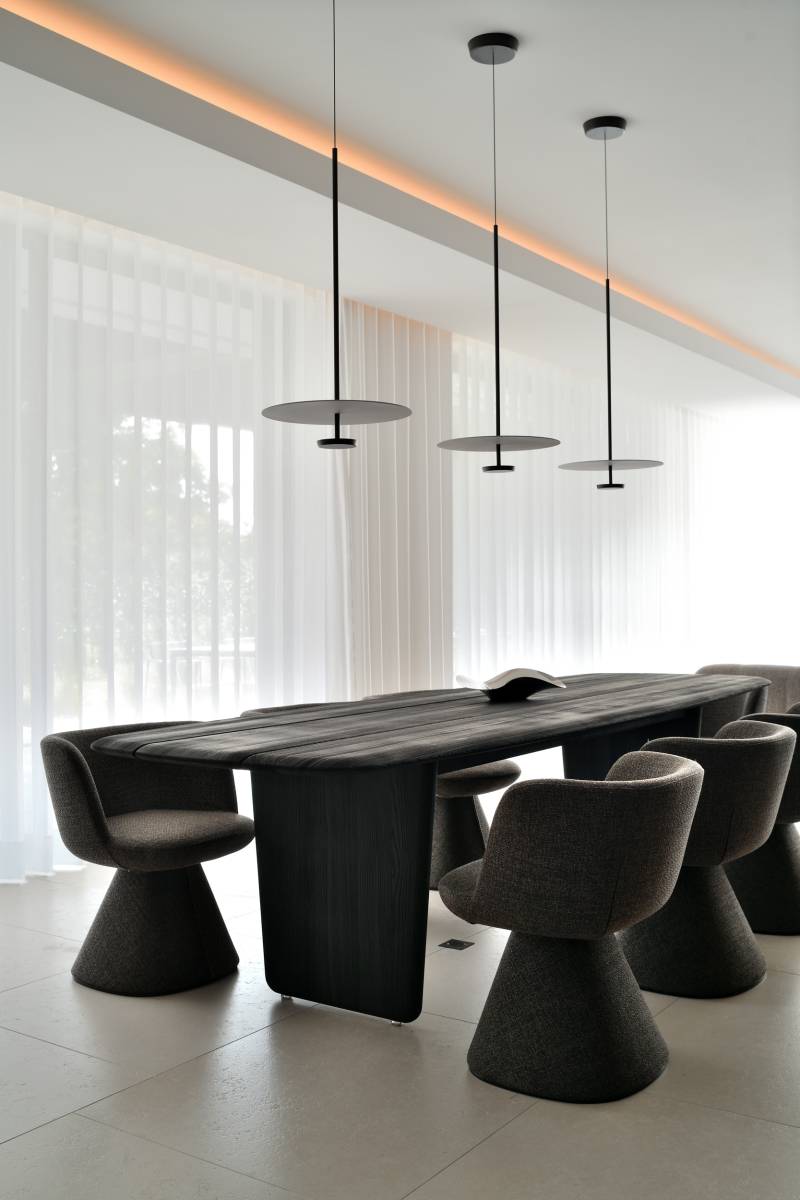 Cette villa incarne ainsi une vision contemporaine de l’élégance, où la beauté des matériaux, la maîtrise de la lumière et la rigueur technique se conjuguent pour offrir un intérieur raffiné et poétique.