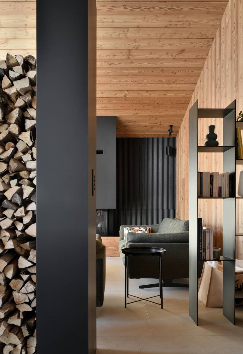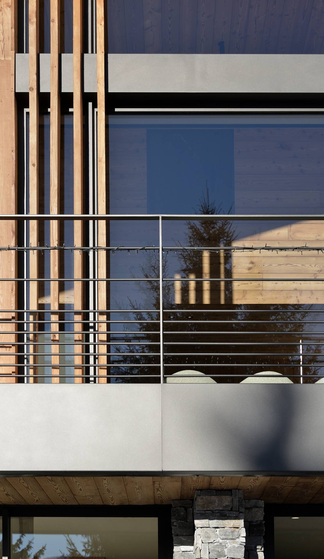 Construit avec des matériaux naturels comme le mélèze, la pierre et le métal, ce chalet reflète l’essence même de la montagne. Les volumes épurés et la structure contemporaine viennent moderniser les codes classiques de l’architecture de chalet. L’utilisation du bois et de la pierre crée une atmosphère chaleureuse.