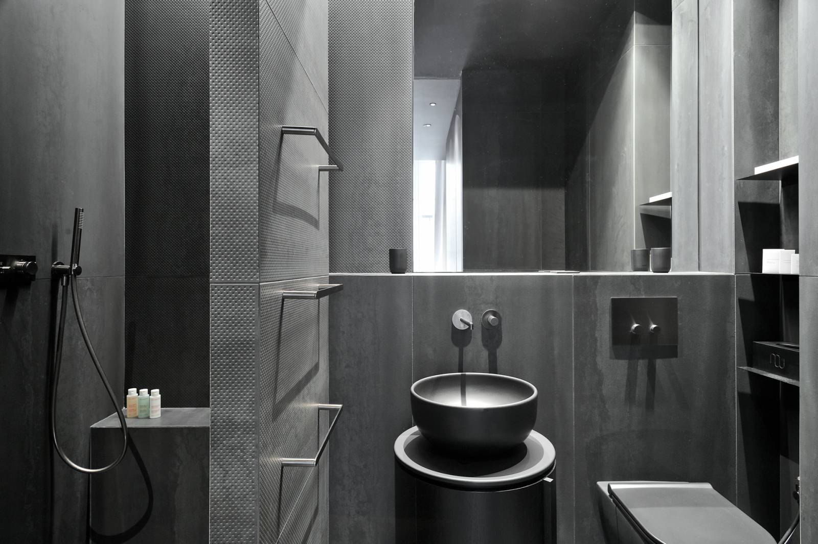 Chaque logement s’articule autour d’une dualité saisissante. D’un côté, un univers sombre et moderne, évoquant une sobriété contemporaine. De l’autre, une ambiance blanche et ancienne, témoignant du caractère historique de la ville. Cette opposition subtile, comme une danse visuelle, crée un équilibre où les contrastes se rencontrent harmonieusement.