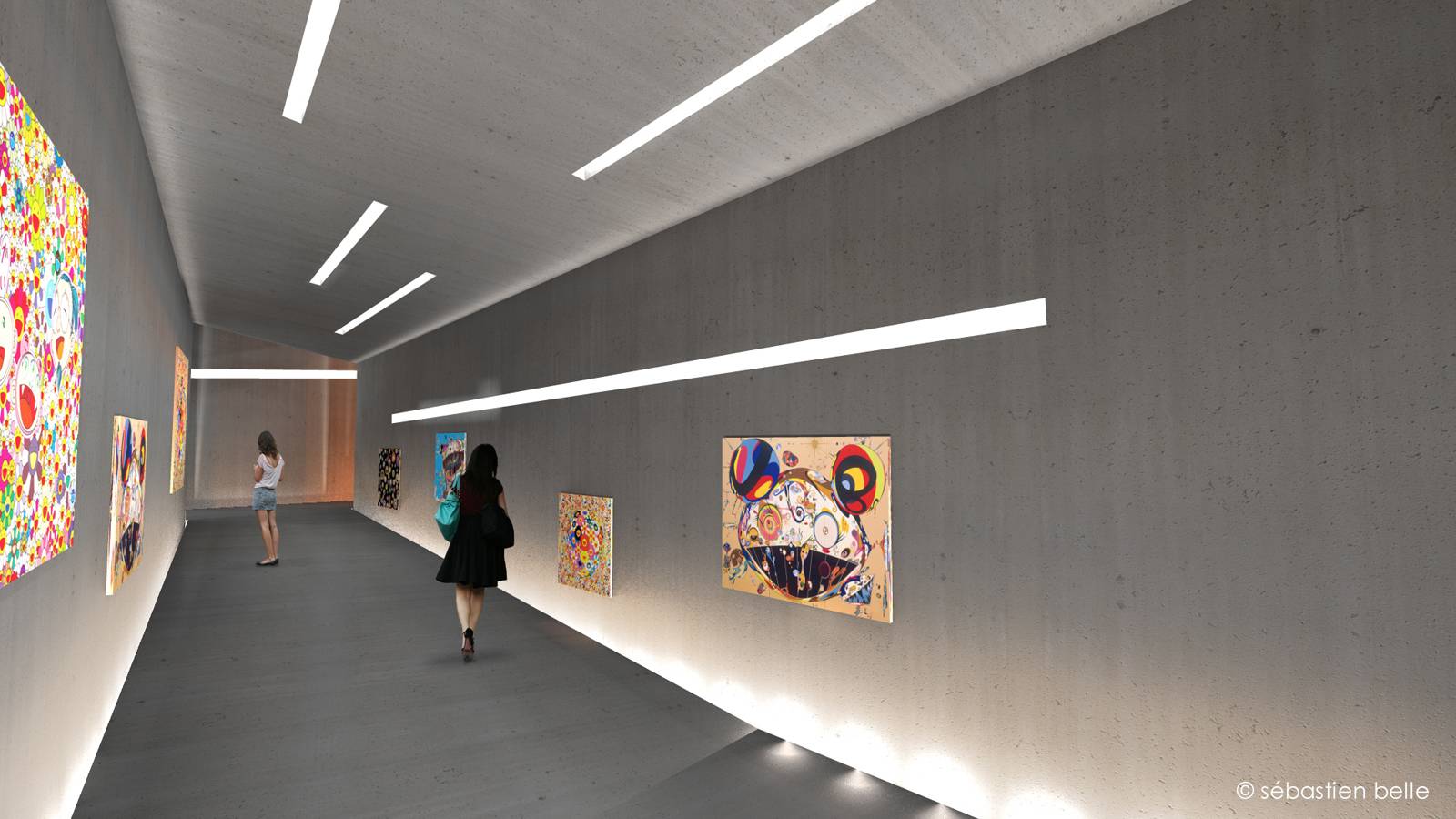 Cette galerie d'art, spécialisée dans la provocation, est conçue en trois ailes détachées de l'enveloppe originelle. Chacune de ces ailes propose une perspective qui lui est propre. La première est en tension visuelle, la deuxième en dévers physique, et la troisième en distension visuelle. L'art, lien universel entre le matériel et l'immatériel, bénéficie, dans cette structure, d'un support scénographique en quatre dimensions.