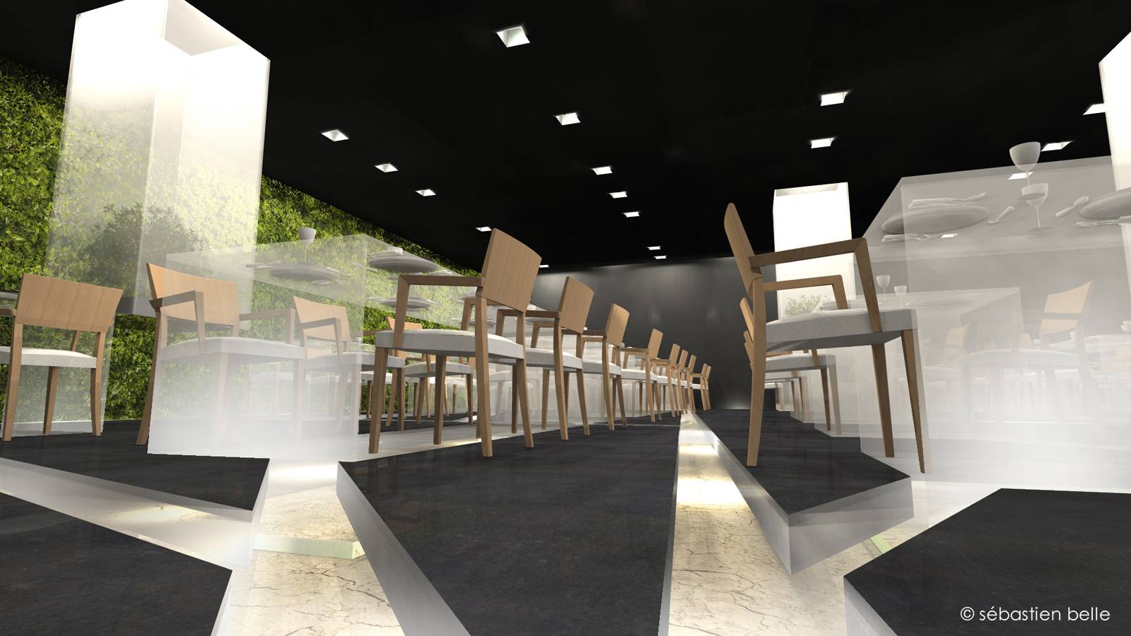Situé dans le cœur du Vieux Lyon, ce restaurant est un écrin contemporain dans l'Histoire. Les six faces rapportées à ce lieu sont en double peau devant la construction vieille de trois siècles. Toutes ces parois sont décalées les unes des autres pour laisser quelques aperçus sur les pierres et la terre. Le contemporain est un prétexte pour élever l'âme de la construction existante au rang d'œuvre. Le sol, découpé de failles vitrées, est ici une vitrine sur l'Histoire. Les différents jeux de transparences assoient le lien naturel entre végétation et matériaux minéraux. Le lieu marie alors l'instant à l'Histoire.