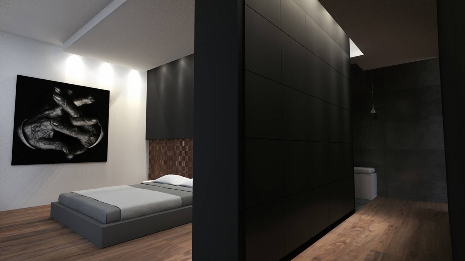 Offerte à un terrain étroit, la maison devait créer de l'aération et proposer une relation forte avec l'extérieur. Au rez-de-chaussée sont implantés les espaces principaux du bâtiment. Décomposés en quatre unités imbriquées, ils offrent des univers extérieurs singuliers et variés. Entre contemplation et intimité. Les deux unités majeurs sont le séjour et la suite principale. Entre celles-ci, deux mineurs, le garage et la cuisine, s'articulent et interpénètrent les espaces. Le R-1, en sous-bassement, abrite d'autre chambres et différents espaces.