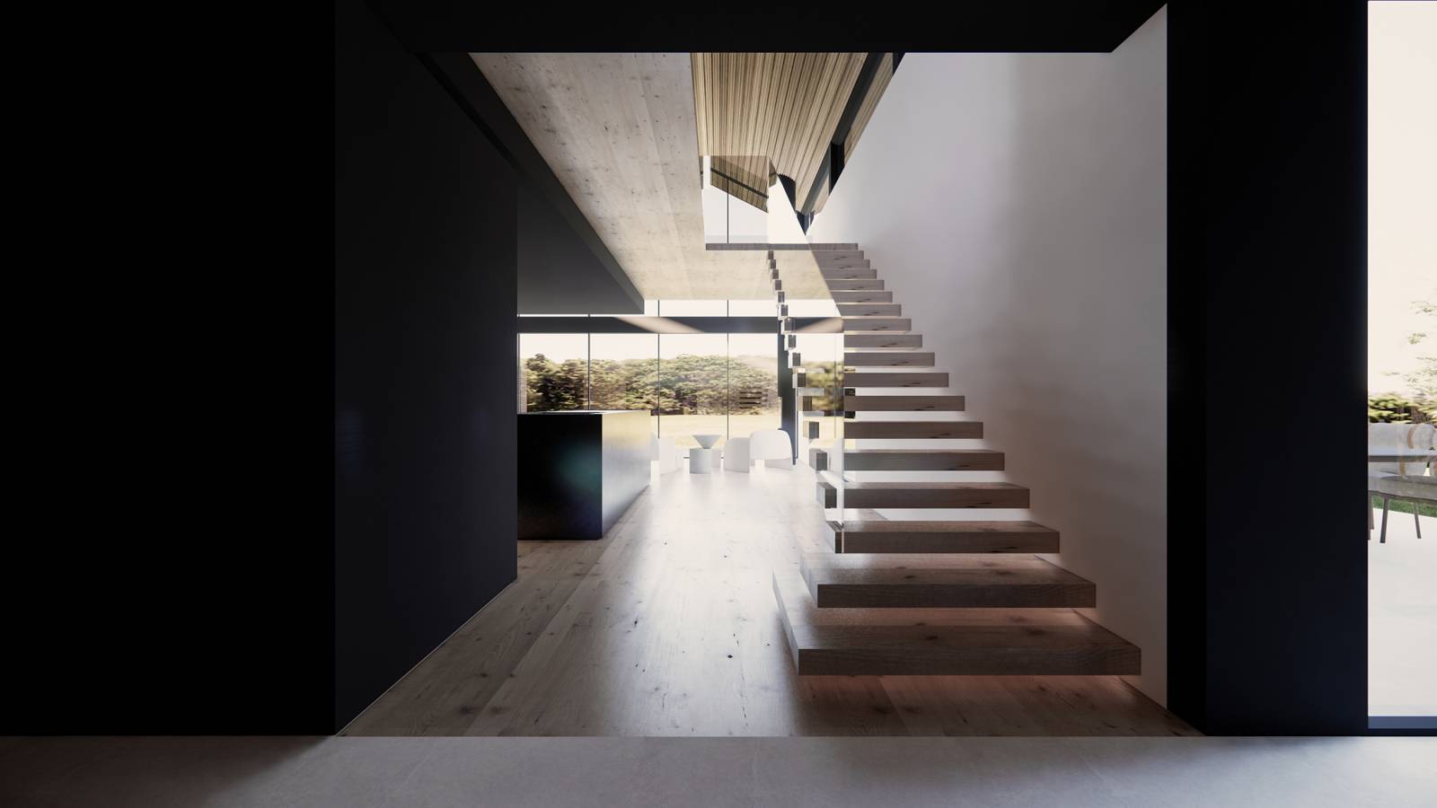 L’intérieur reste sur des matériaux simples. Ce sont les volumes qui créent l’architecture, sans astuces, ni trucages.
